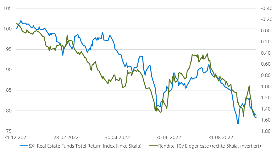 Die Kurse der kotierten Schweizer Immobilienfonds haben im September 2022 erneut stark nachgegeben. Was ist passiert? Bietet das aktuelle Kursniveau eine Einstiegsgelegenheit?