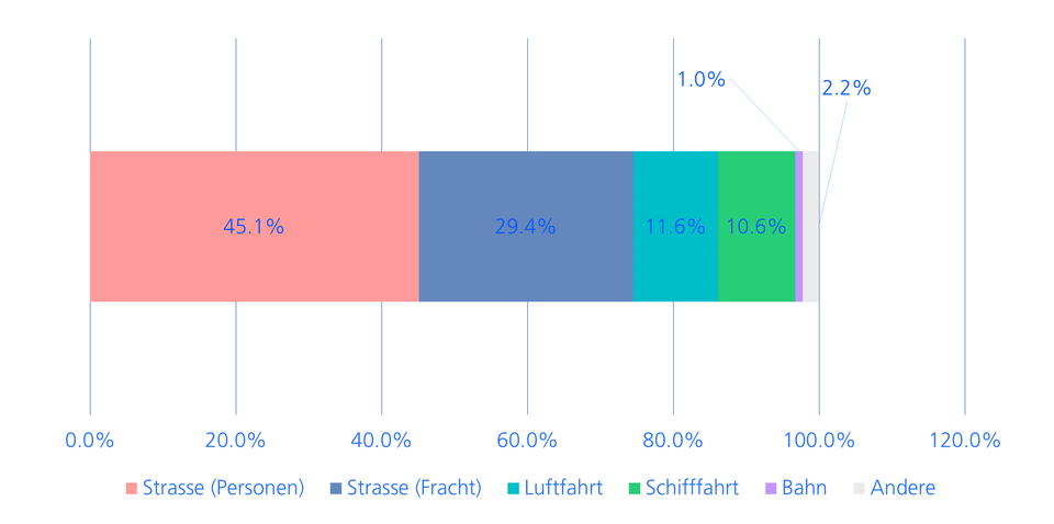 Globale Anteile an CO2-Emissionen in % nach Transportart