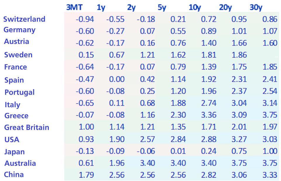 The interest rate hikes that have already taken place and those that are expected have already had a strong impact on global yield curves. Even though yields have still been markedly negative in many countries during this year, many longer-dated government bonds are now priced at very attractive levels again: