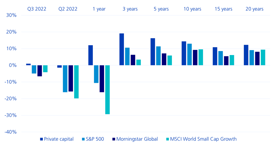 Private market investments were more resilient relative to listed companies, especially in recessionary years. This is because private equity-owned companies can often respond more quickly to operational problems and a changing market environment. In addition, investments in innovation and growth are often considered to be more long-term than companies listed on stock exchanges.