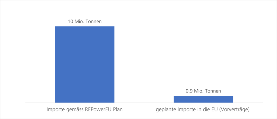 EU-Wasserstoffimporte - strategisches Ziel versus aktuelle Vorverträge (Angaben in Mio. Tonnen)