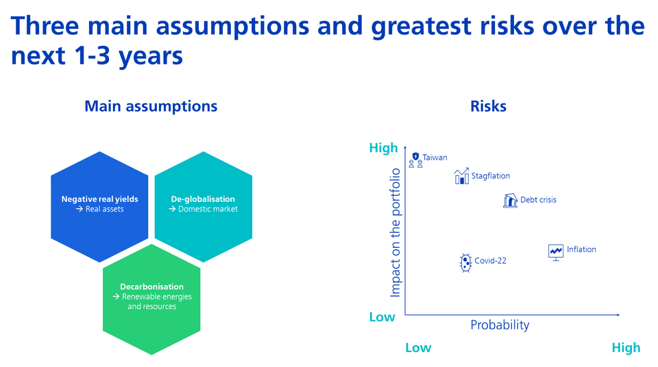 Main assumptions and risks determined by the multi-asset investment committee for 2022